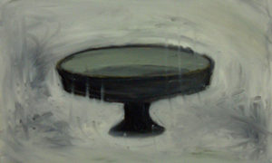< “さあ、どうぞ – Here you are”, 27x45cm, 2004, oil on canvas