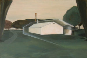“幸せから遠ざかる家-the house which goes away from happiness”, 97x145cm, 2003, oil on canvas